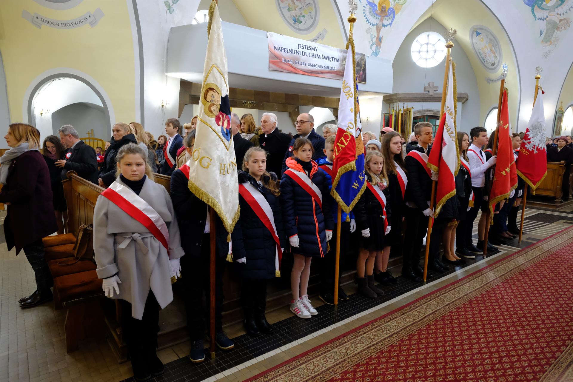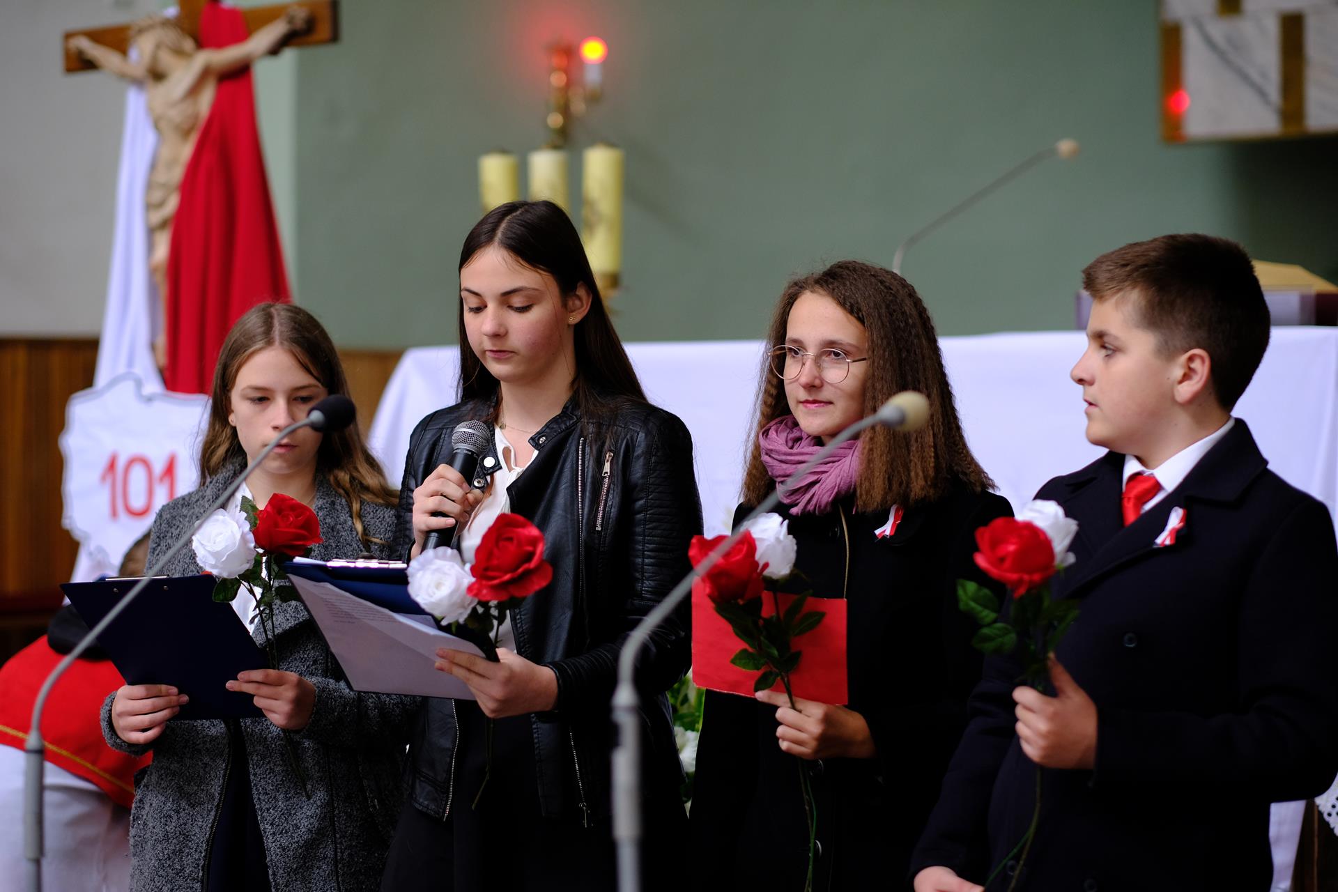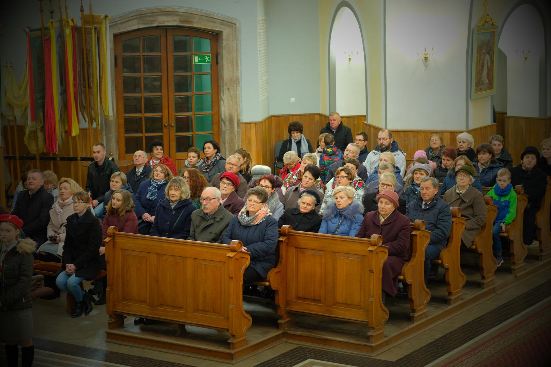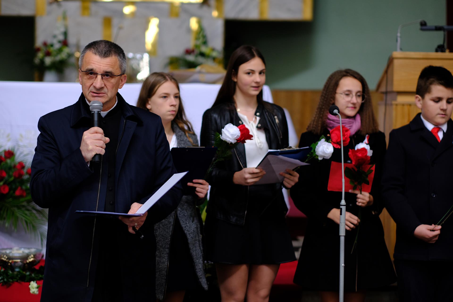 11.11 Występ młodzieży przed Mszą Świętą Msza Święta Procesja eucharystyczna Złożenie kwiatów Występ w Domu Parafialnym foto. Artur Cieślak