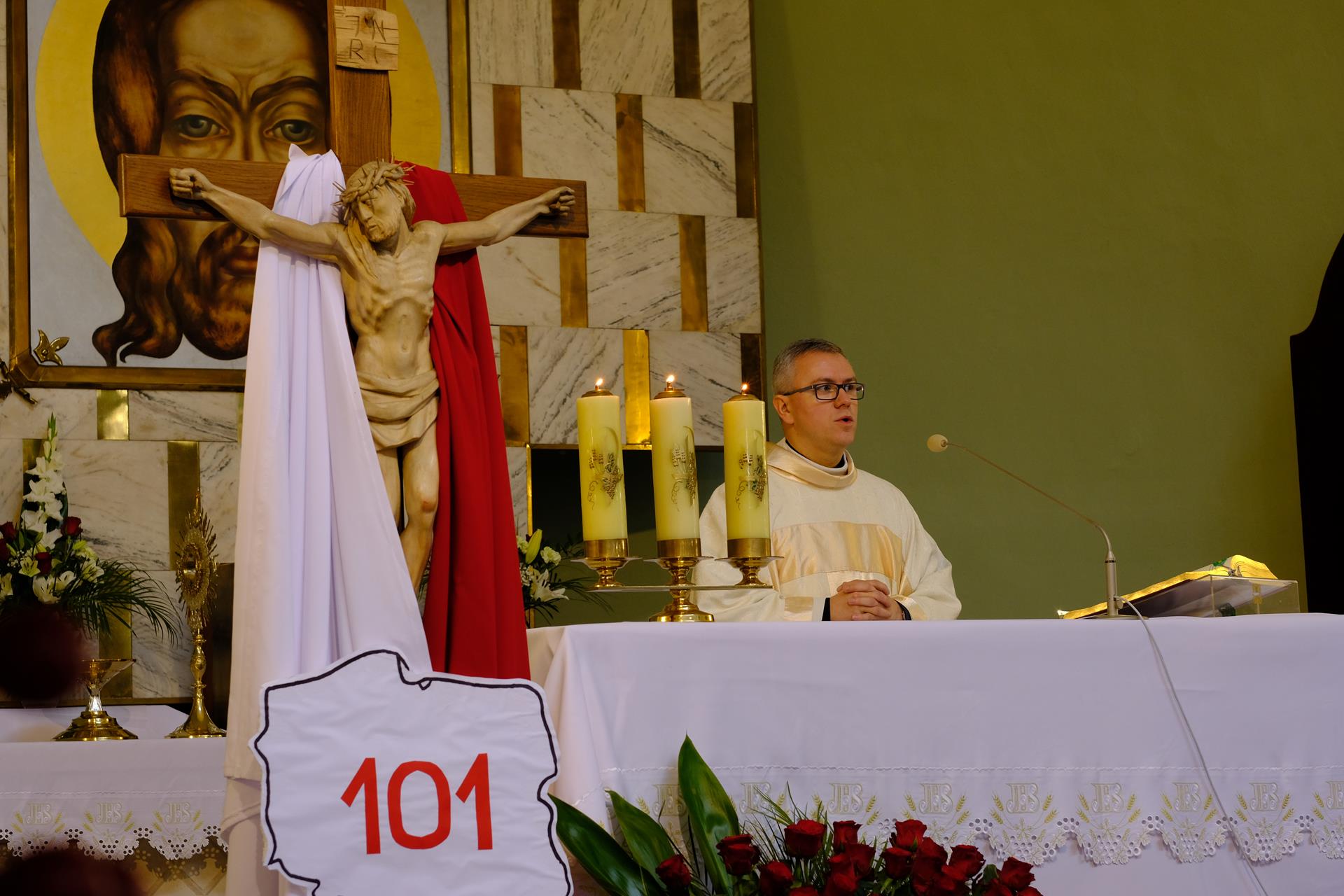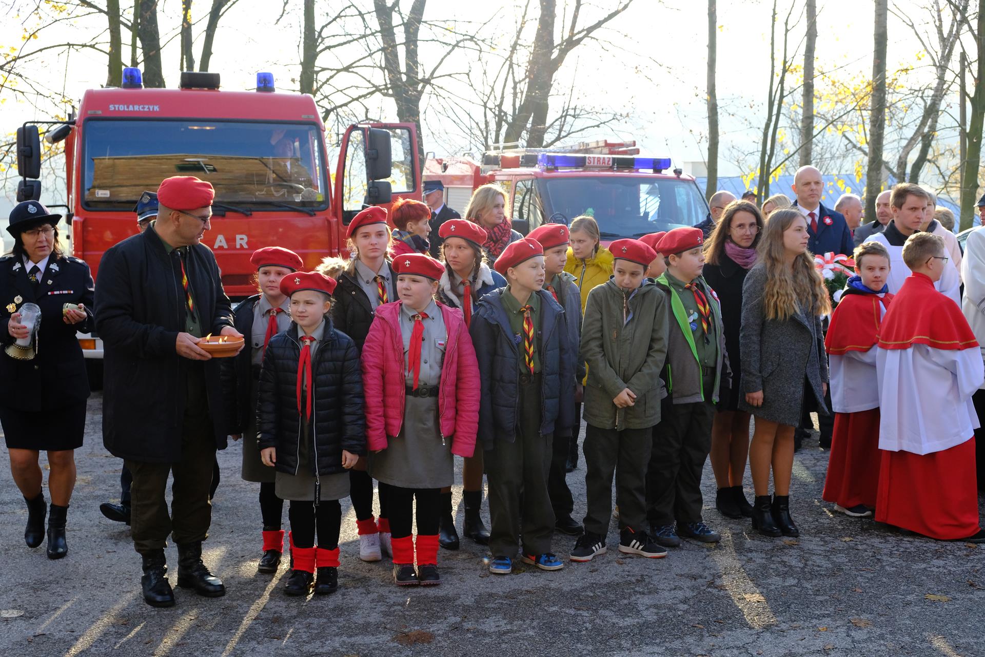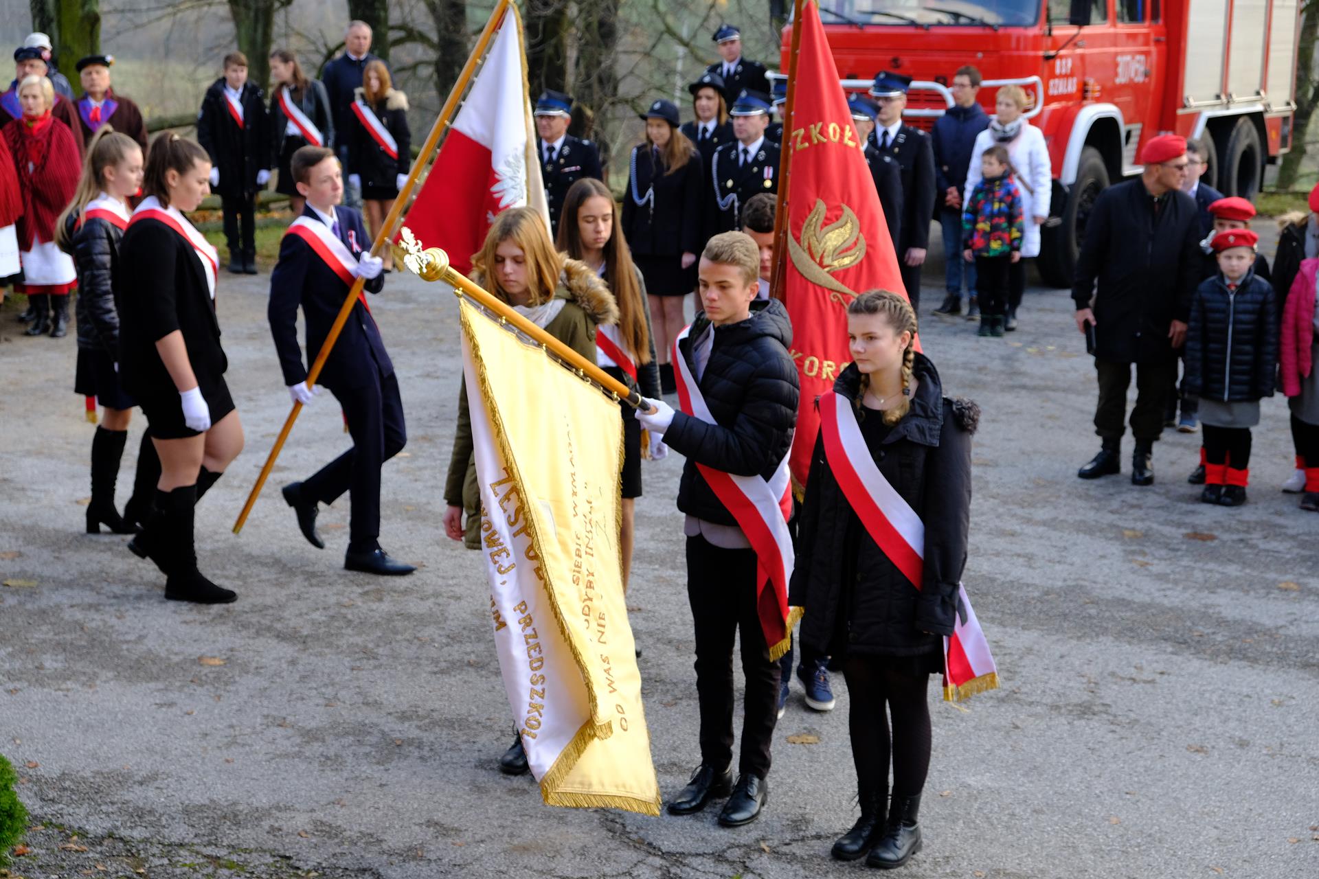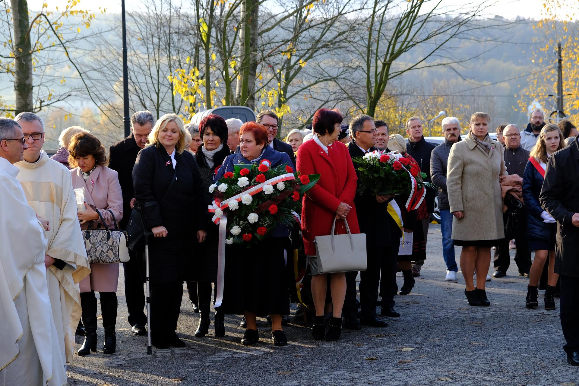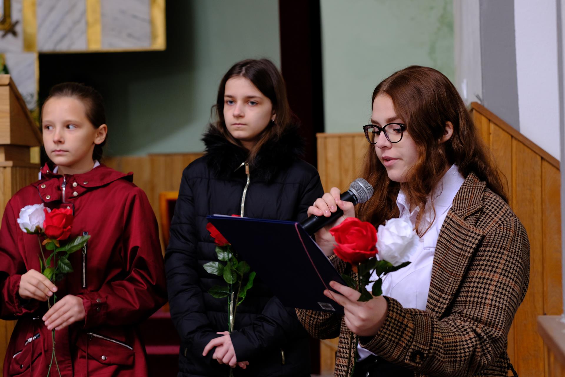 11.11 Występ młodzieży przed Mszą Świętą Msza Święta Procesja eucharystyczna Złożenie kwiatów Występ w Domu Parafialnym foto. Artur Cieślak