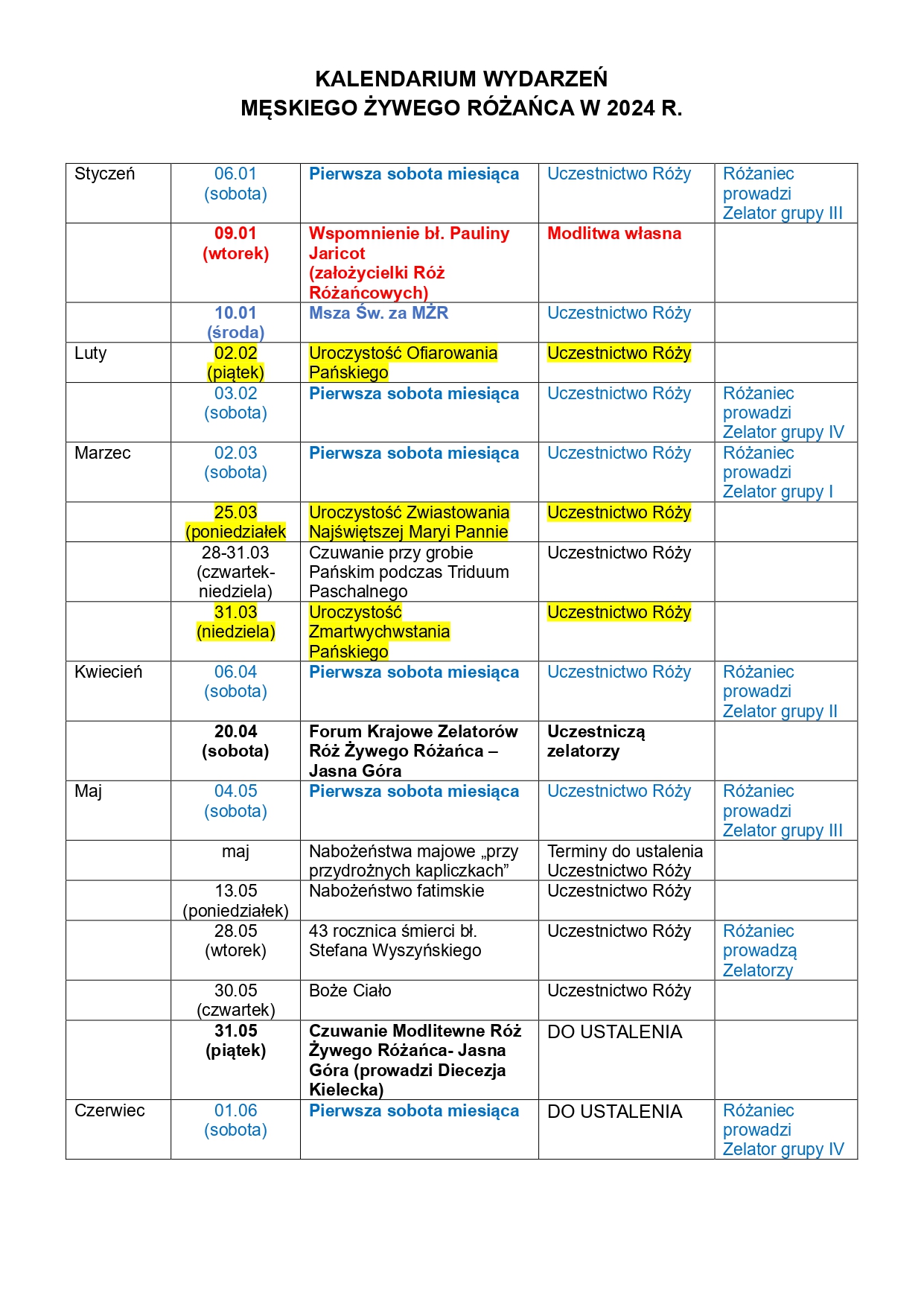 KALENDARIUM WYDARZEŃ MŻR 2024